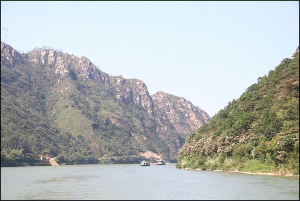 秋游的第一站是有“清遠小三峽”之稱的清遠北江,清遠北江的江面開闊,空氣清新,登上當地的農家游船,隨著船的緩緩移動,吹著清涼的江風忘卻平時工作中的煩惱,心情也慢慢放松下來,兩岸的山景連綿不斷地倒影在江中,若細心的話還可以看到在水中嬉戲的魚兒,時而群群白鶴貼著江面飛來飛去,陣陣江風吹來真是舒暢。