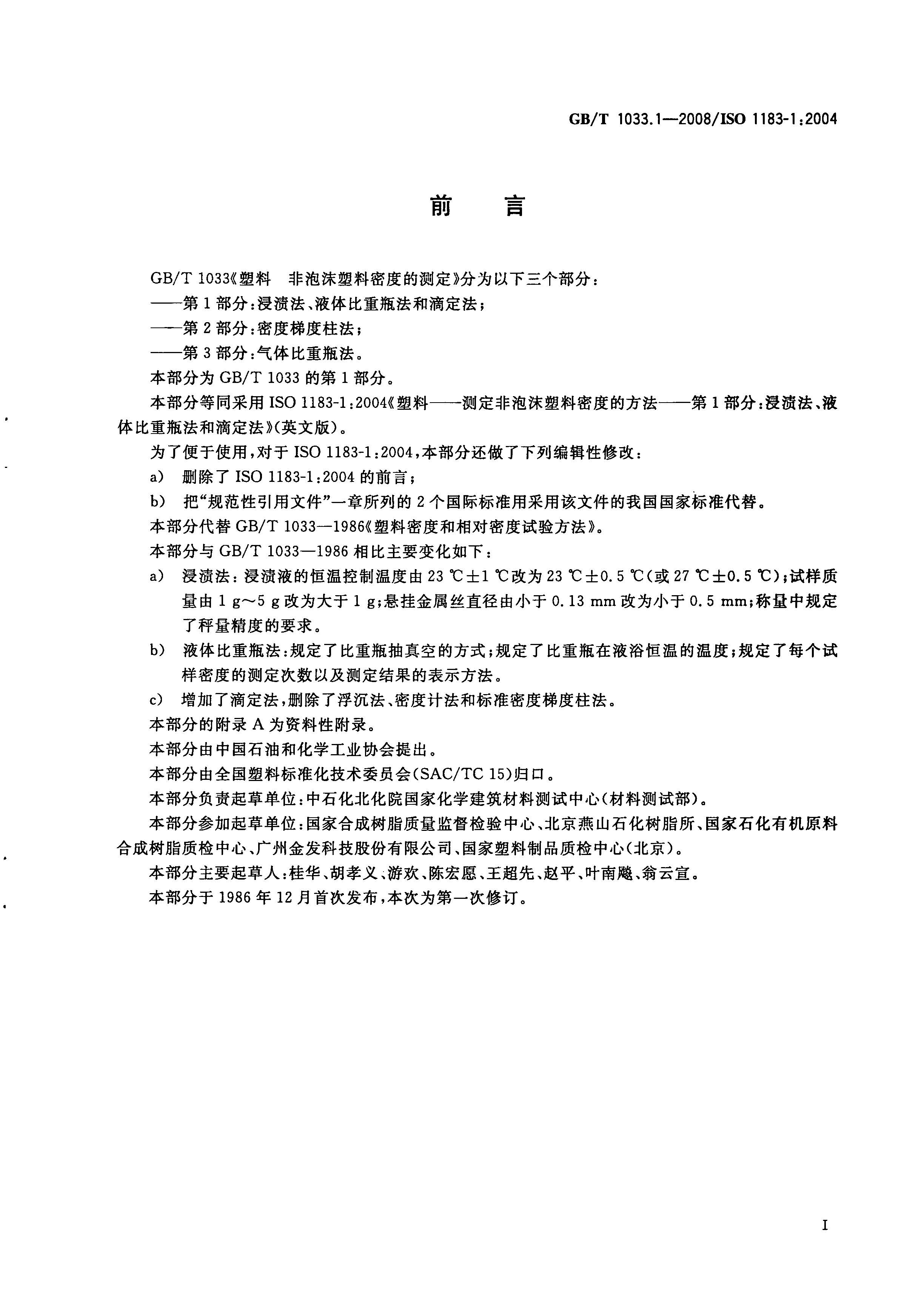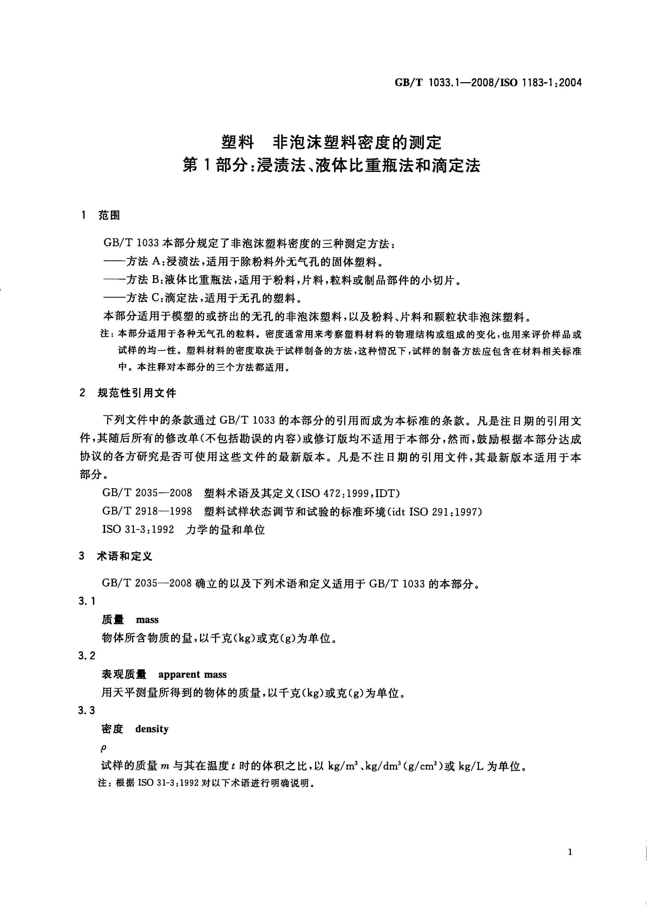 非泡沫塑料密度的測定GBT1033.1-2008